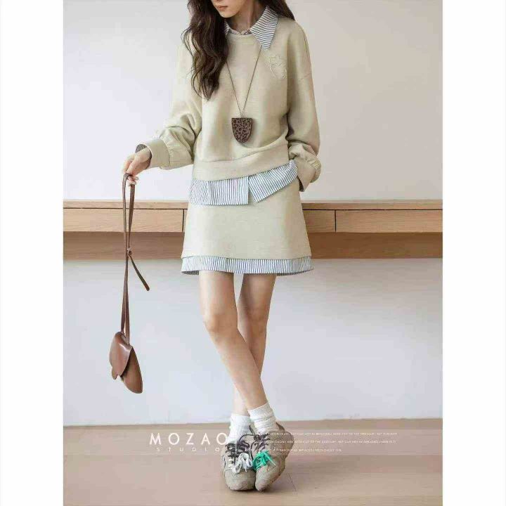 慵懒风杏色假两件设计感女士A字短裙.单款单色带短裤· 质量做工非常好.50...