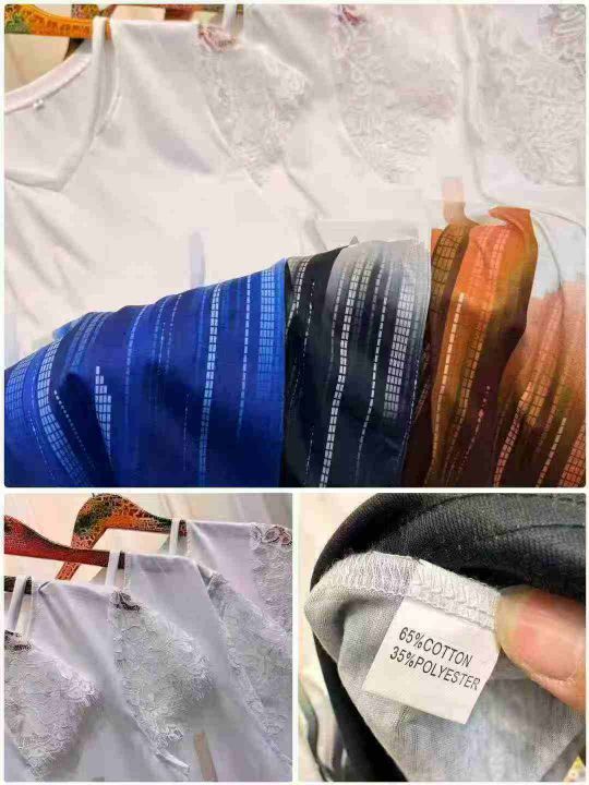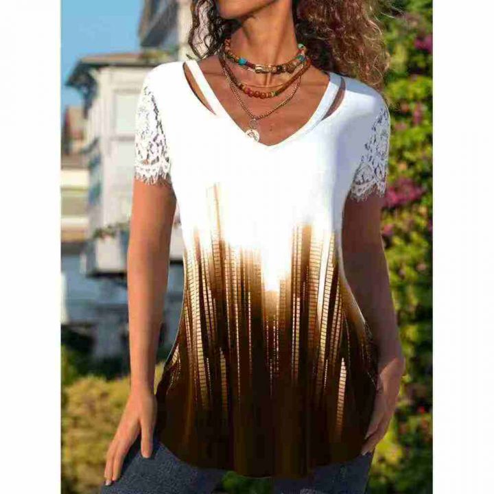 721件,夏季新款欧美女装V领蕾丝渐变个性印花宽松短袖T恤女,独立包装\'码数S-5XL,分货➕1,货号001#30
