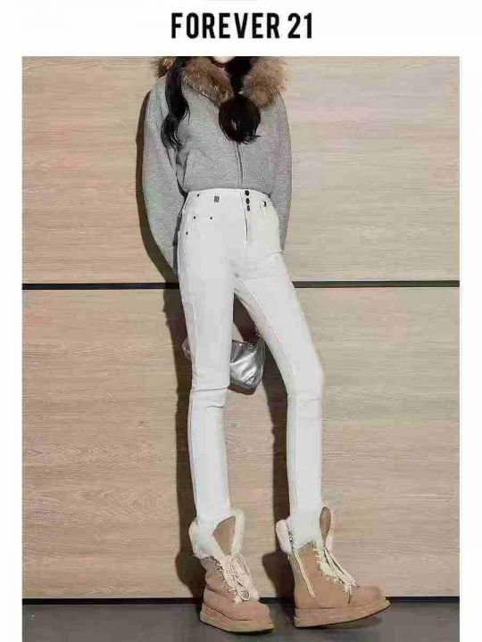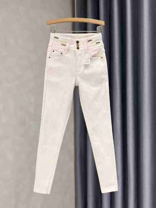 7.9清65件奶白色高腰小脚牛仔裤女秋冬季新款弹力显瘦减龄百搭紧身铅笔裤长裤 内里有加绒 码数25-31 独立包装