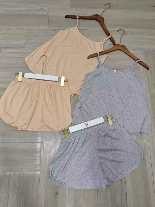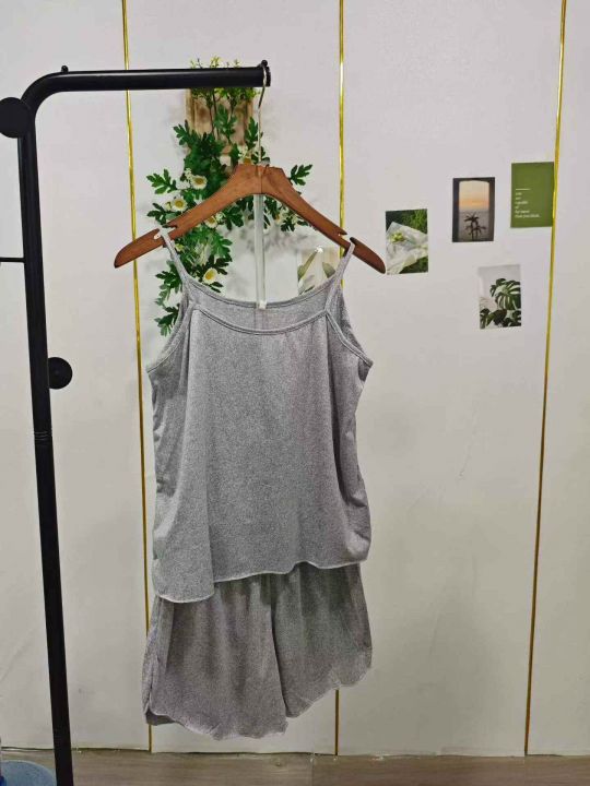 夏季性感吊带短裤女薄款睡衣两件套大码春秋家居服套装(灰色为主)
