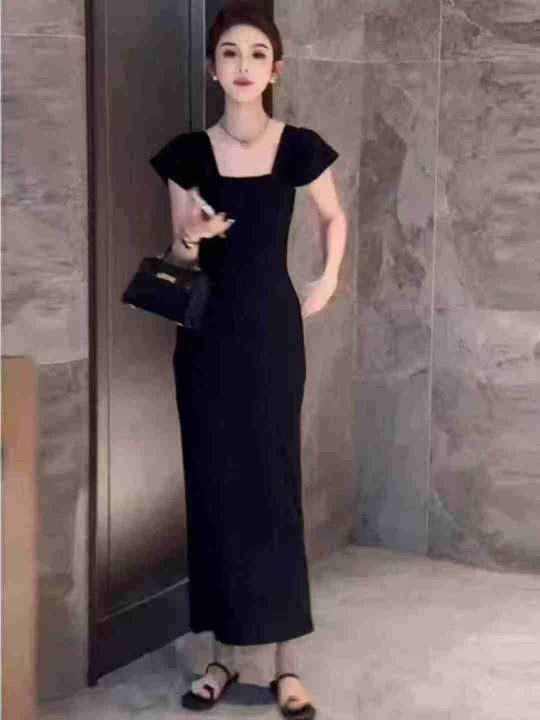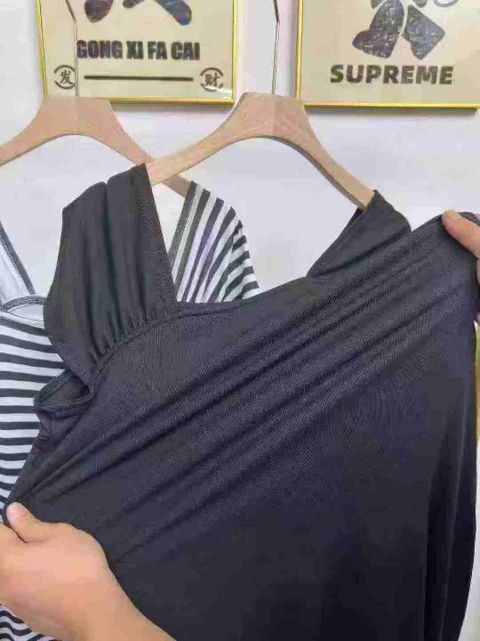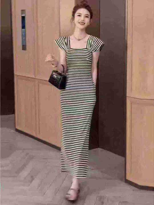 天猫在售款400件左右高品质夏季小个子撞色条纹方领短袖连衣裙,码数S-L,单款两色,高弹力,独立包装带吊牌
