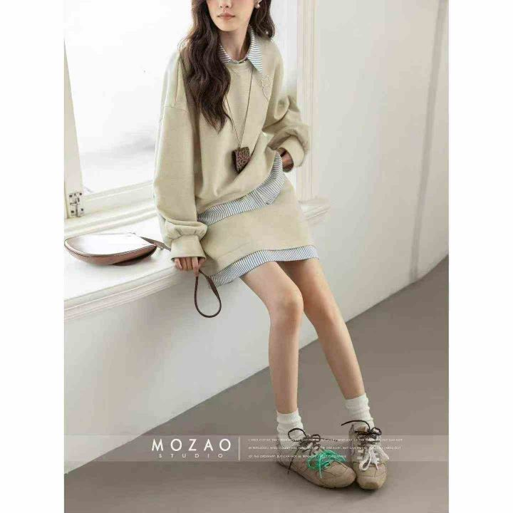 慵懒风杏色假两件设计感女士A字短裙.单款单色带短裤...