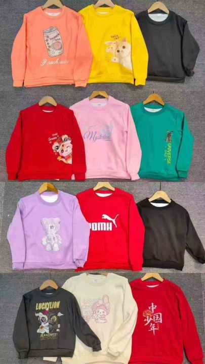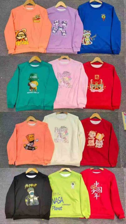1560件秋冬男女中大童休闲圆领多巴胺印花加绒卫衣 内里婴儿绒,后领包边过肩 杂图杂色,码数110-170 货品干净防水袋装。