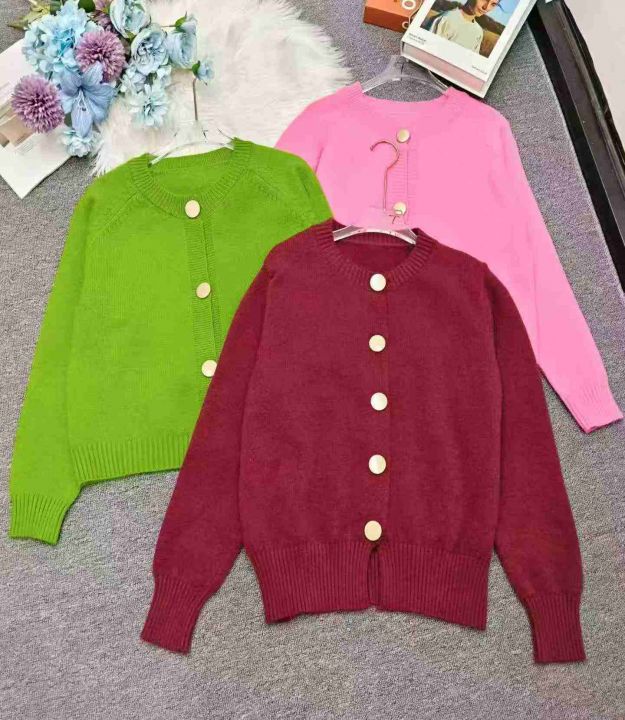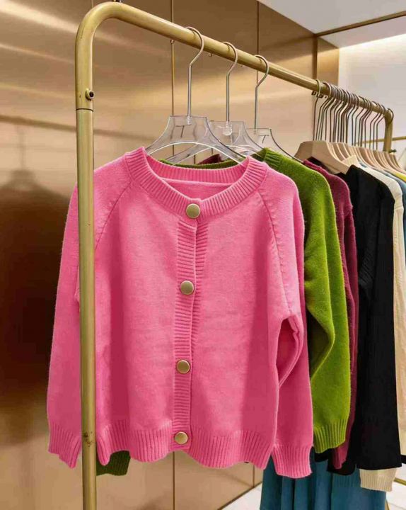 韩系多巴胺色针织开衫女长袖显瘦百搭毛衣外套,独立包装,可入实体店,基本图片款,均码,45件,不分货
