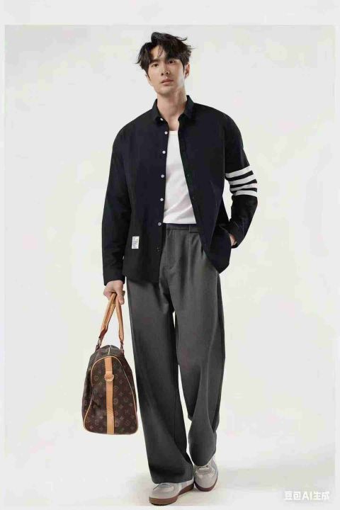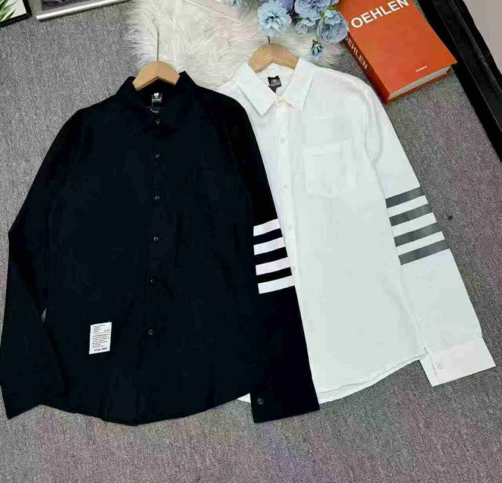 潮牌春秋季新款四条纹宽松衬衫男女情侣衬衫长袖,650件 码数:M-3XL (1点到5点)独立包装,分货➕1 (货号305#1)
