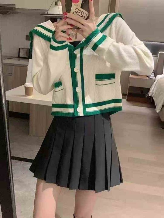 上新全清:12.8一件复古海军领撞色拼接宽松百搭开衫毛衣,[爱心]125件左右...