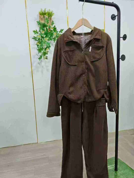 冬季加绒加厚时尚套装女新款女士减龄灯芯绒外套妈妈装...
