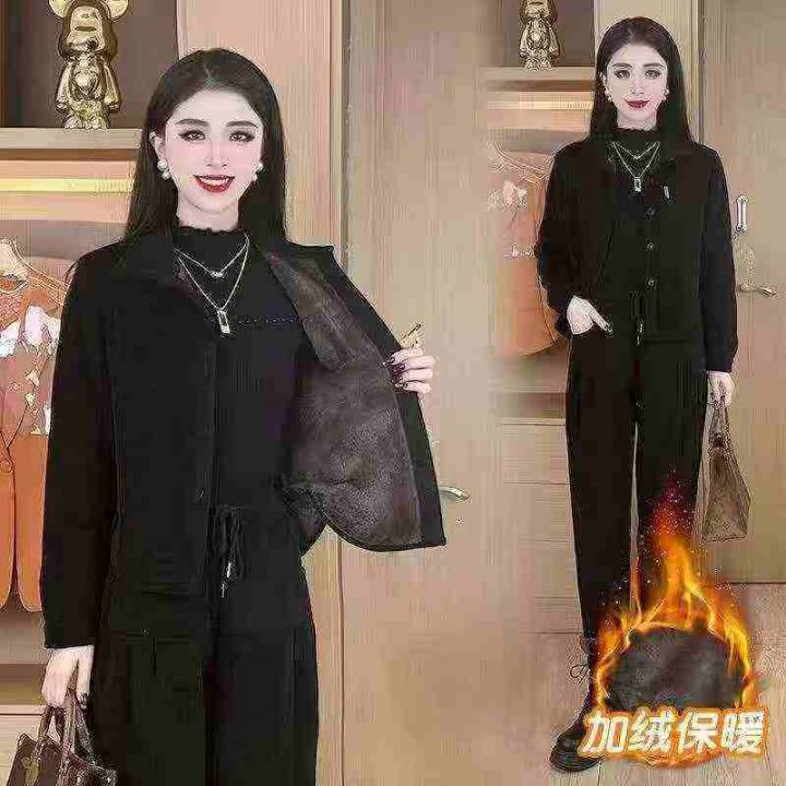 冬季加绒加厚时尚套装女新款女士减龄灯芯绒外套妈妈装高档两件套