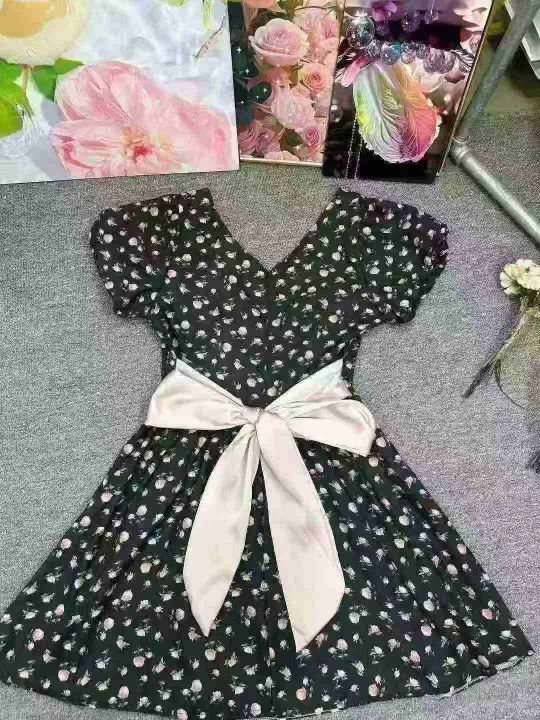 法式复古桔梗碎花连衣裙2025夏季新款蝴蝶结收腰显瘦a字裙,单款单色,2.3.4.5码,独立包装,货品干净,2630件,7.9清,分货加1