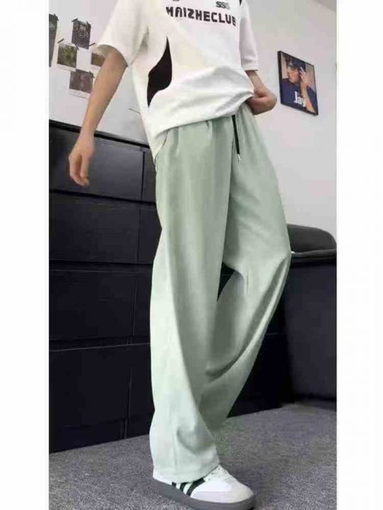 酷丝棉休闲裤男春季新款男生垂感百搭宽松阔腿直筒裤男...