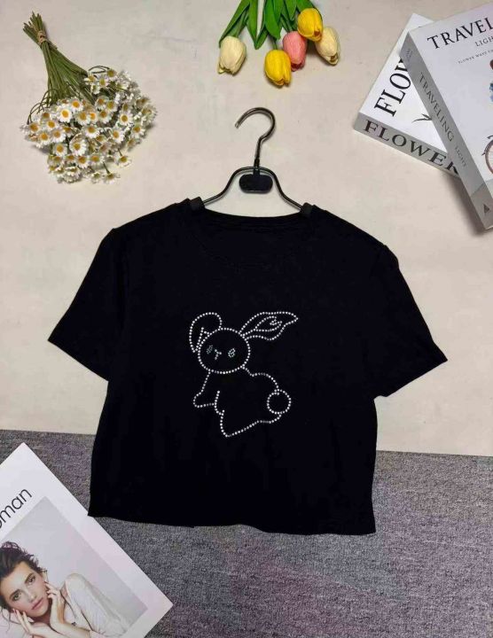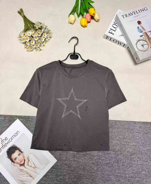 时尚洋气修身显瘦短款辣妹印花短袖T恤,图片款,品质好,工厂原单,5件一包