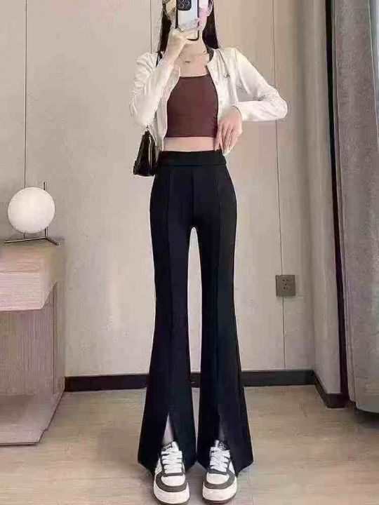 10.8清1660条女高腰显瘦高弹力喇叭裤 内里包边 货品干净 实体店可入 (长度规格有八分少量/九分/长裤/加长 ) 有开叉不开叉 码数S-5XL 独立包装带吊牌 分货加一