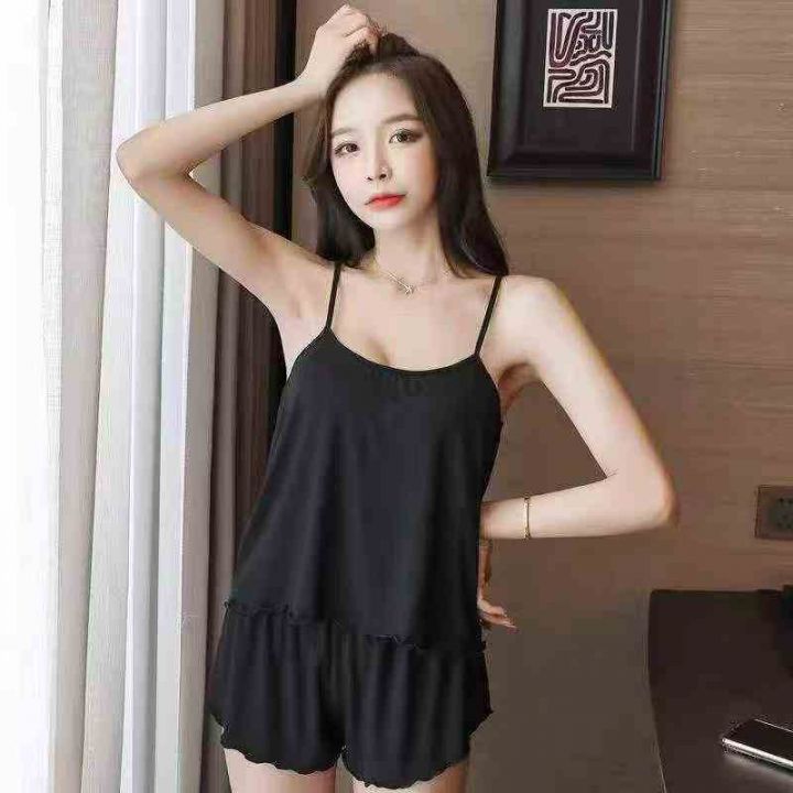 夏季性感吊带短裤女薄款睡衣两件套大码春秋家居服套装...
