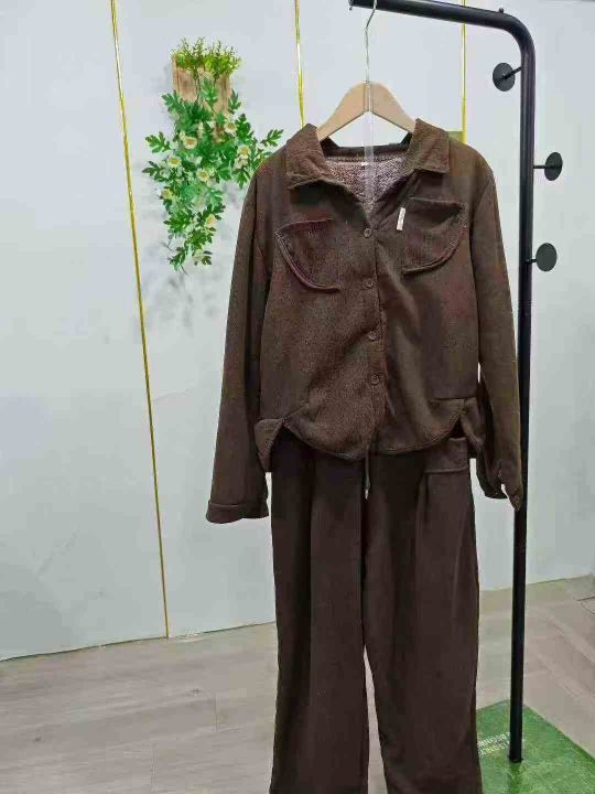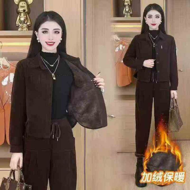 冬季加绒加厚时尚套装女新款女士减龄灯芯绒外套妈妈装...