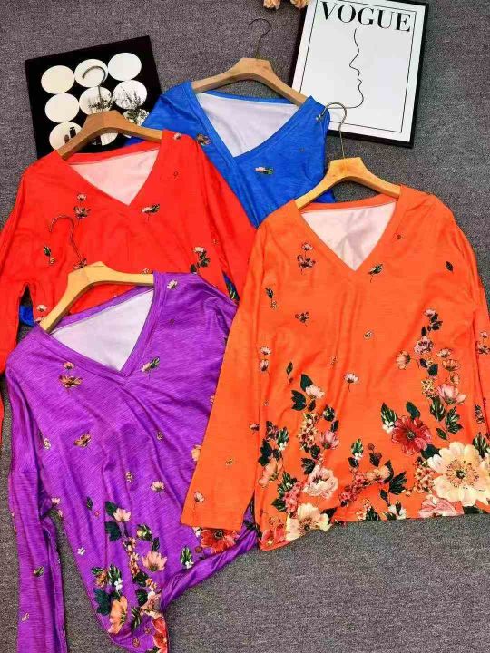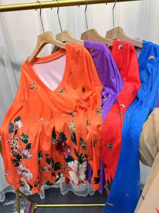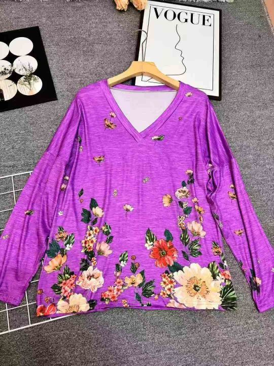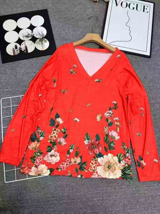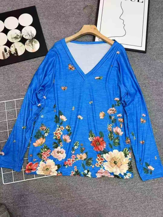 820件\'秋冬新款亚马逊wish欧美跨境女装V领套头印花长袖上衣T恤女,独立包装,码数5XL,分货➕1,货号001#30