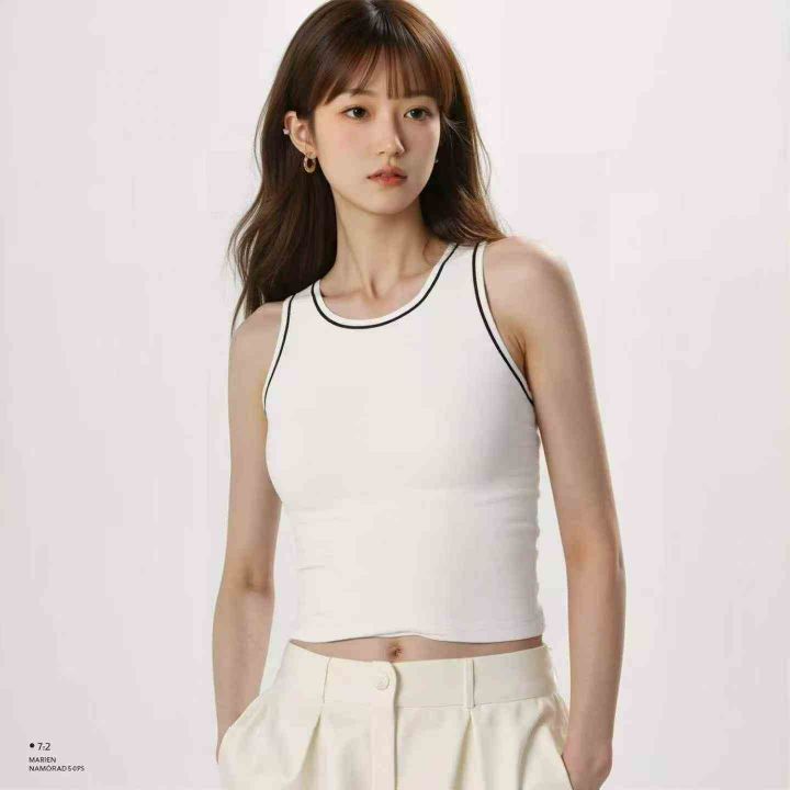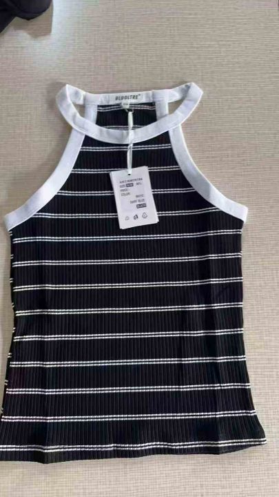 日单女装夏季带运动辣妹风挂脖条纹和净色打底背心,纯...