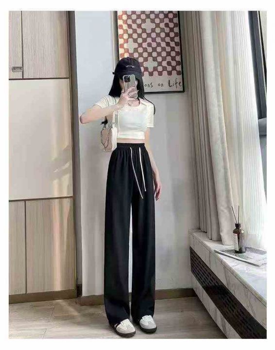 冰丝窄版西装阔腿裤女春夏季高腰垂感抽绳休闲裤直筒裤 180条 2-4码 大货黑色为主 独立包装(货号325#45)