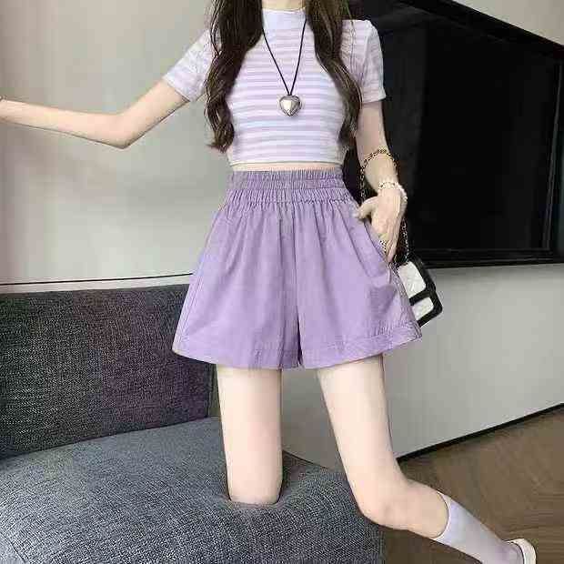 斜纹棉辣妹阔腿短裤女 33条,全清6.8元,正品独立包装,码数~L 单码单色,洗水棉短裤女夏季紫色裤子2026新款松紧高腰宽松阔腿辣妹热裤