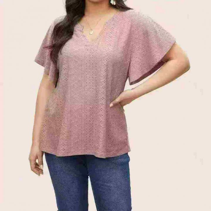 清2.8分货➕0.5大码女装夏季时尚宽松短袖镂空罩衫显瘦上衣提花宽松大码T桖...