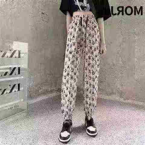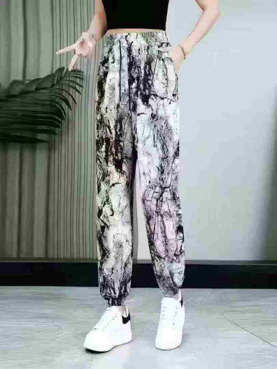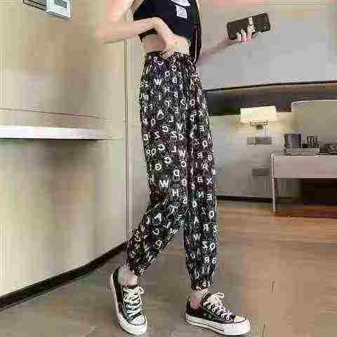 1045条夏季新款冰丝裤女垂感宽松九分束脚休闲防蚊裤,...