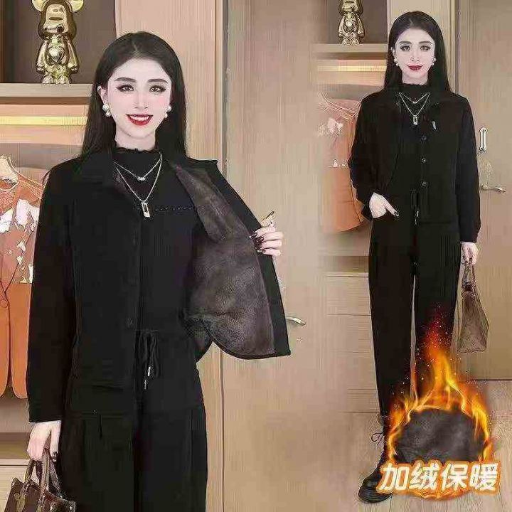 冬季加绒加厚时尚套装女新款女士减龄灯芯绒外套妈妈装高档两件套码数:2-4...