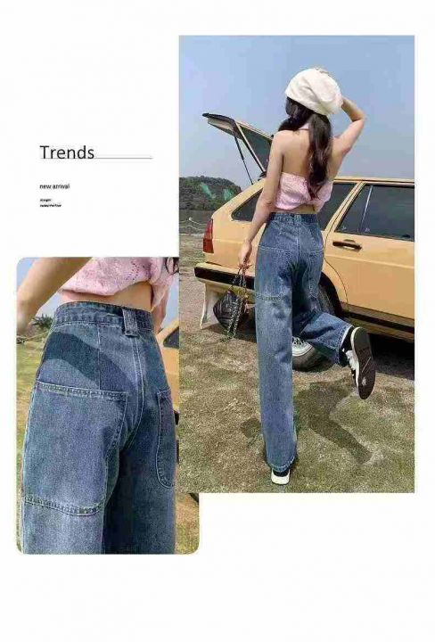 大口袋设计高腰宽松女士牛仔裤,单款单色,独立包装,数量80条,S-2XL码,...