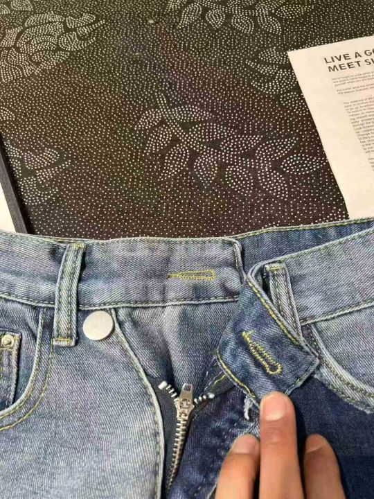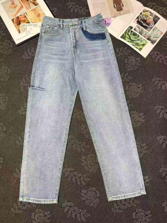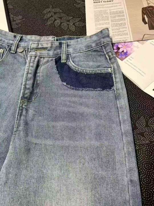 破洞流苏直筒牛仔裤女 32条,全清13.8元,正品独立包装,码数~S. M,设计感宽松直筒牛仔裤女春装高腰显瘦不规则侧边破洞小众哈伦裤潮