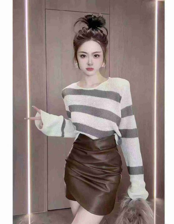 春季新款御姐轻熟风韩系高级感撞色条纹长袖针织衫,独...
