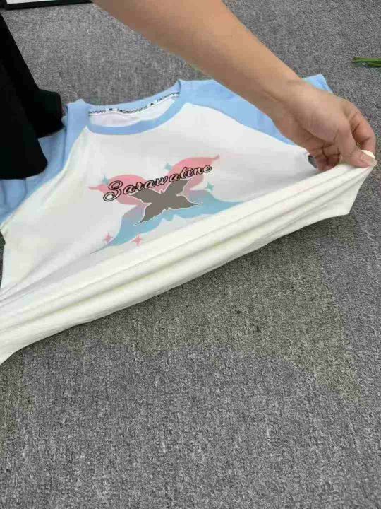 甜酷蝴蝶拼色插肩短袖t恤女,带弹力,数量450件,码数S-XL,独立包装,质量很好,货品干净,