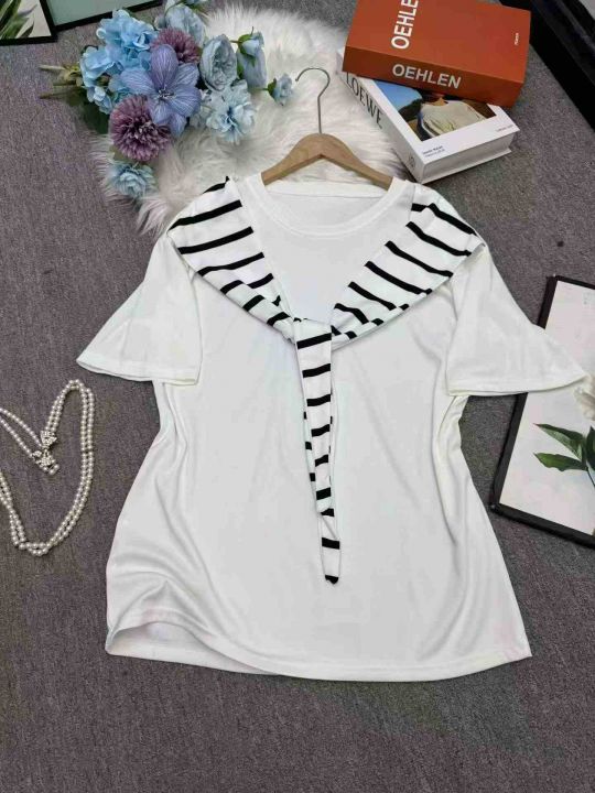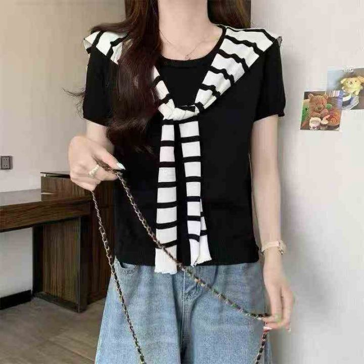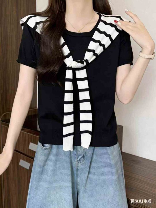 全清价5.9设计感条纹 短恤T恤女夏宽松显瘦通勤风上衣2...