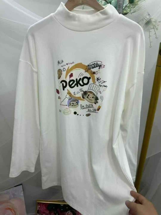 圆领/半高领德绒打底衫女新款内搭宽松白色印花中长款长袖T恤,2种款式,圆领有后领包边,小整款,有少量光版,1到4码,850件左右,独立包装,货品干净,5.8清,分货加1