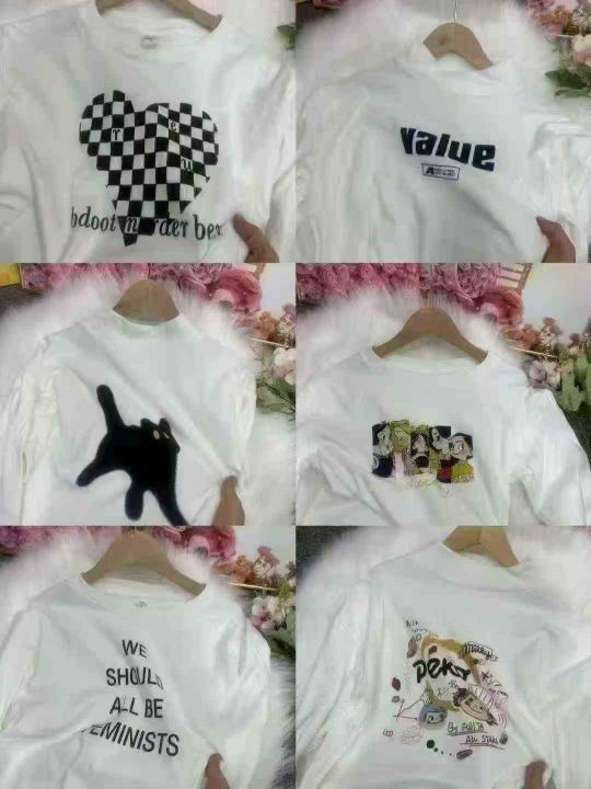 圆领/半高领德绒打底衫女新款内搭宽松白色印花中长款长袖T恤,2种款式,圆领有后领包边,小整款,有少量光版,1到4码,850件左右,独立包装,货品干净,5.8清,分货加1