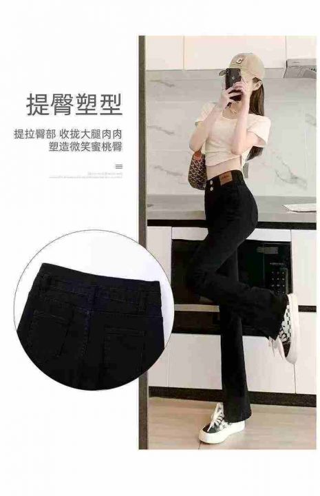 开叉高腰显瘦黑色马蹄微喇叭牛仔裤,单款单色,独立包装,数量1000条,25-31码,福利价9.9秒杀,分货加1(9909#610)