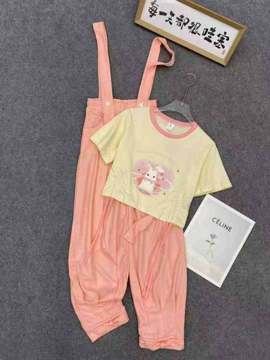 棉质上衣➕华夫格背带裤,