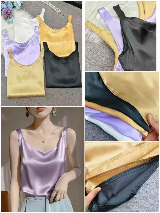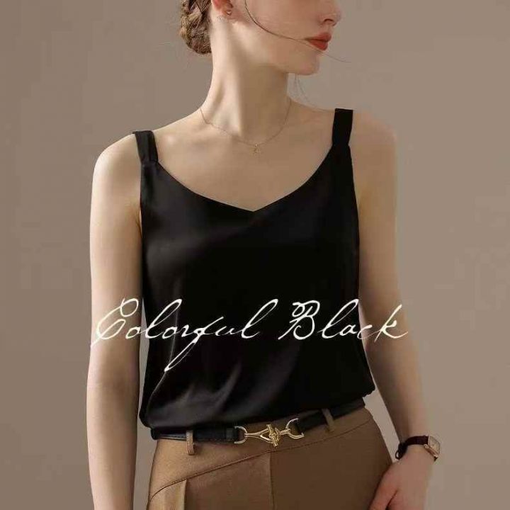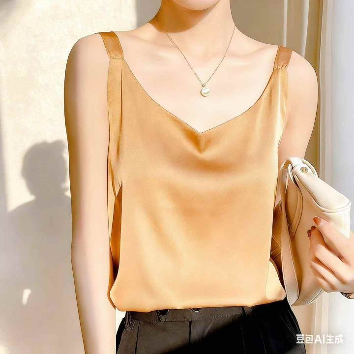 全清价4.6元时尚百搭V领吊带背心真丝缎面内搭打底,独...