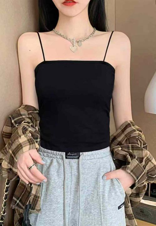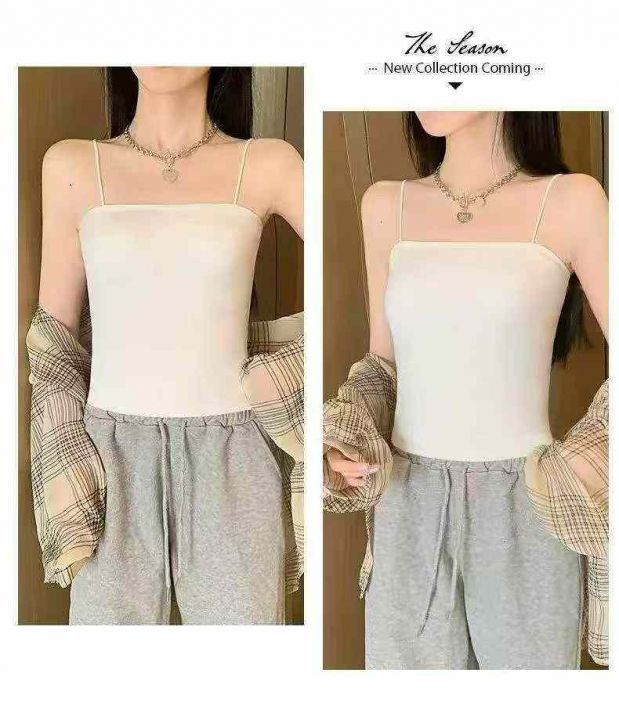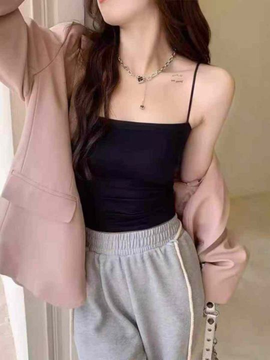 品牌原单夏秋季新品净版百搭95拉架棉吊带背心,白色为...