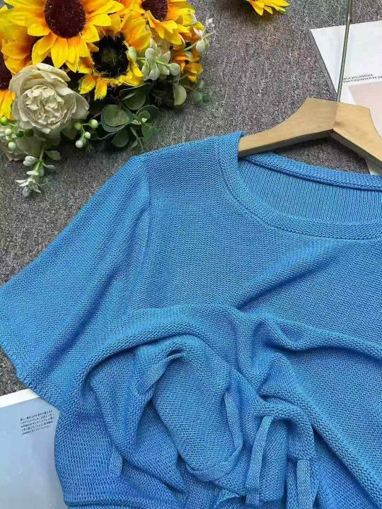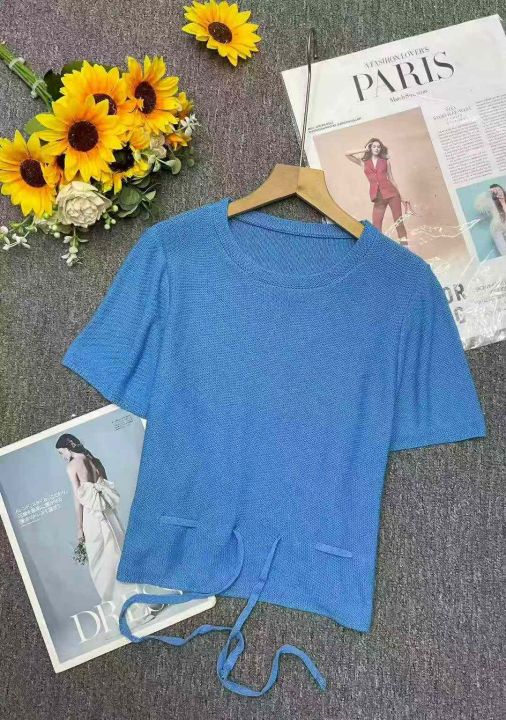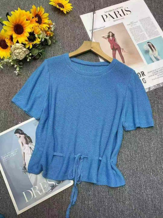 夏季新款韩系设计款收腰显瘦冰麻针织短袖,独立包装,...
