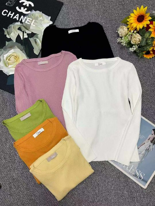 春季新款品牌原单网红净版简约多巴胺冰丝曲珠长袖针织...