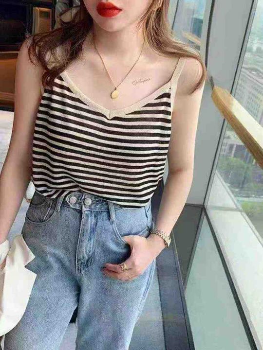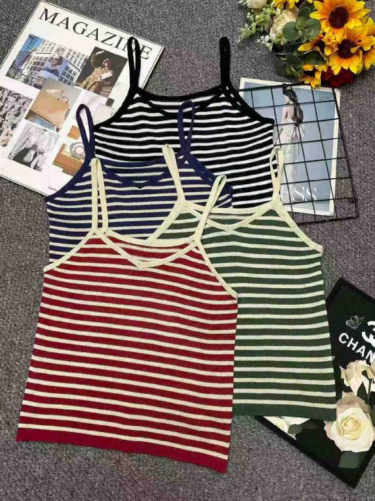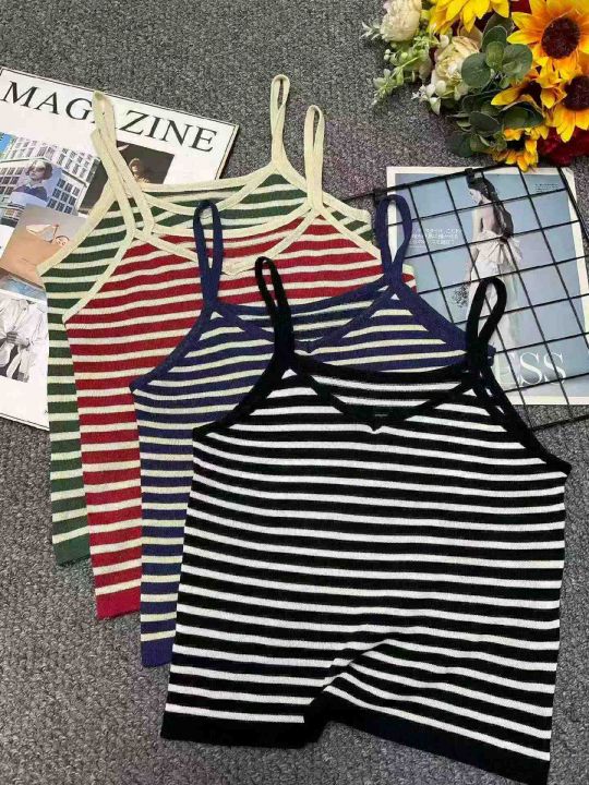 夏季新款撞色条纹韩系宽松百搭针织吊带,独立包装,单...