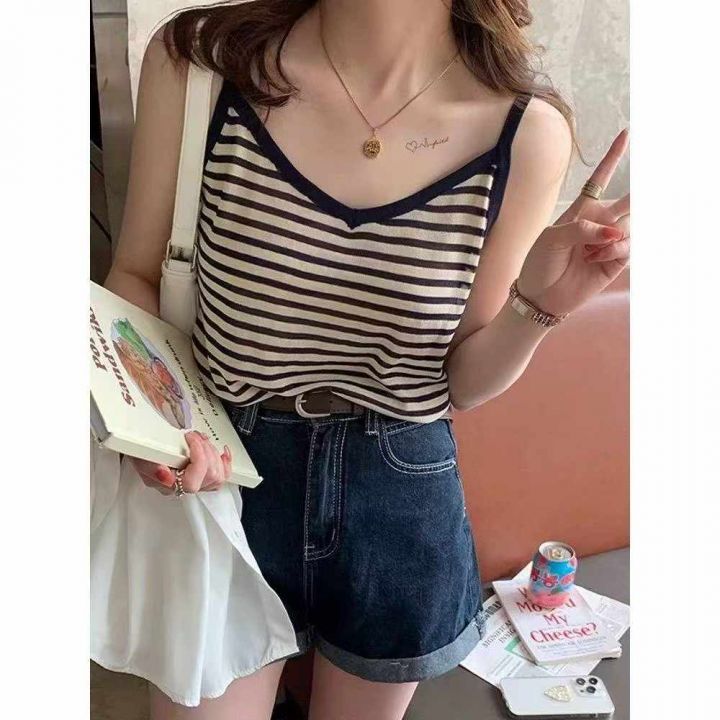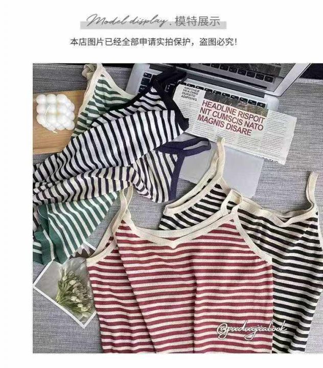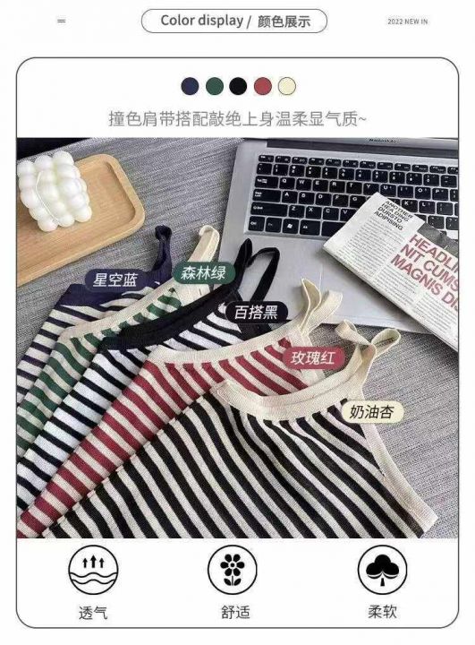 夏季新款撞色条纹韩系宽松百搭针织吊带,独立包装,单...
