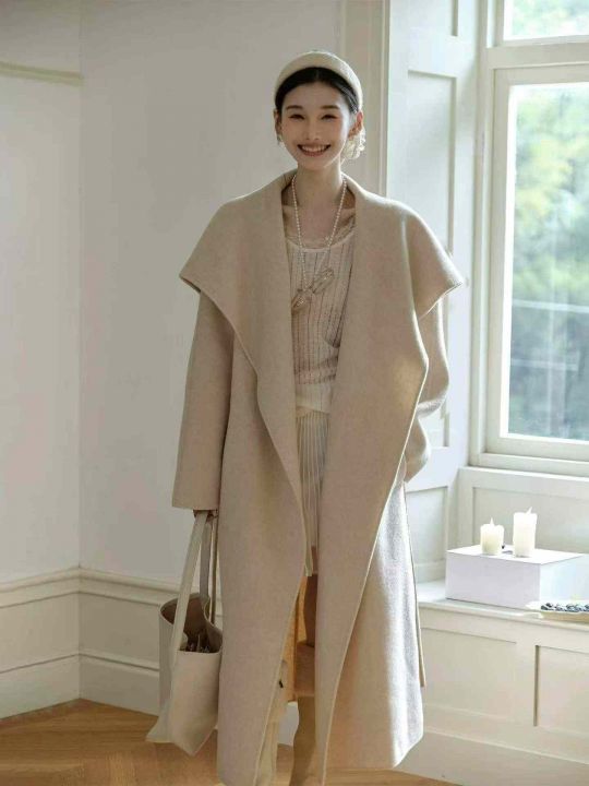 秋冬新款赫本风高级感气质金典毛呢大衣,独立包装带吊...