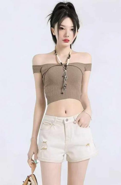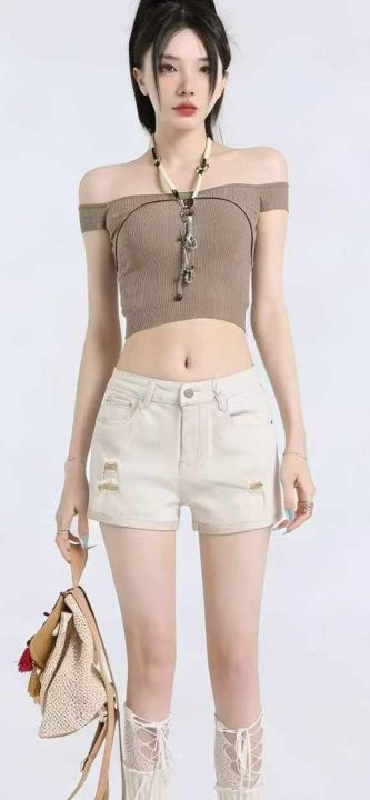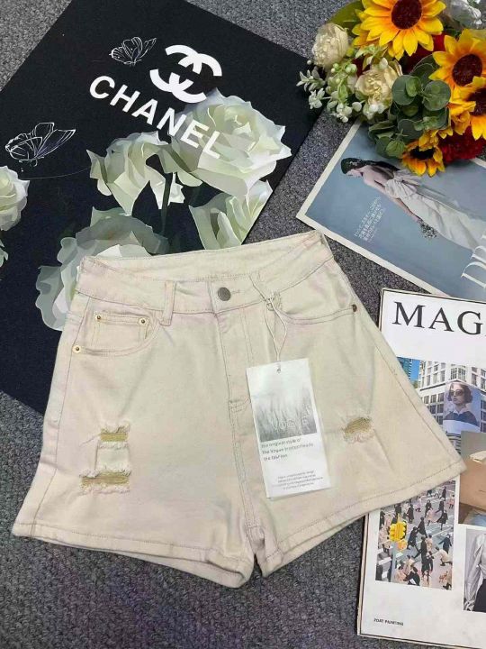 夏季新款高弹力网红破洞设计款洗水棉牛仔短裤,独立包...
