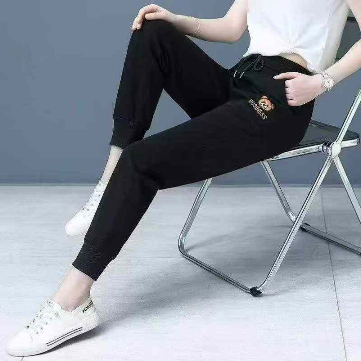 春季新款网红小熊哈伦时尚休闲宽松松紧腰束脚棉卫裤,...