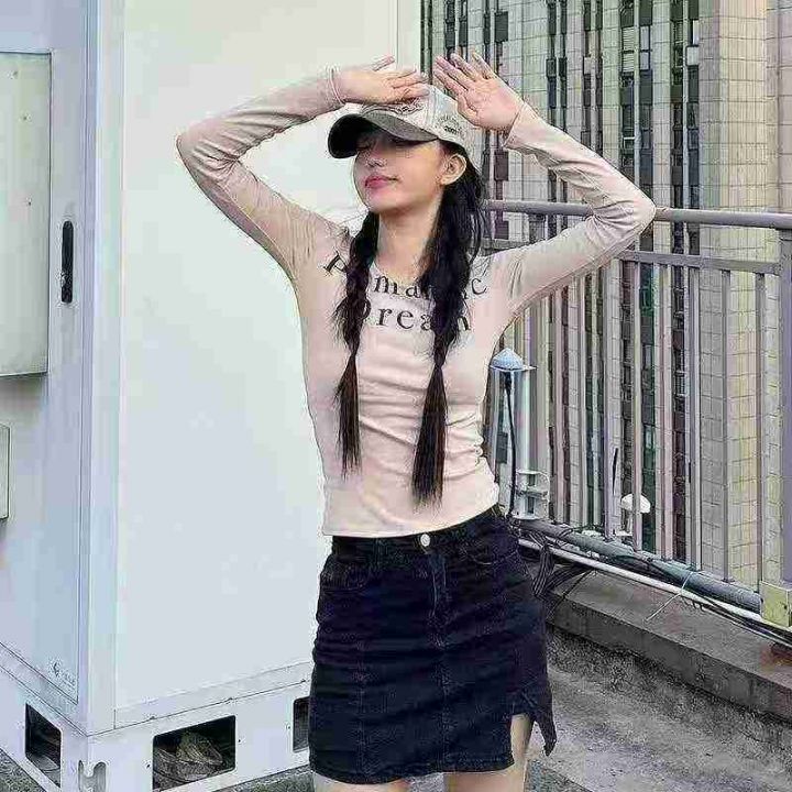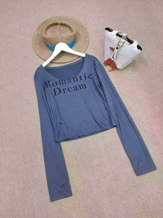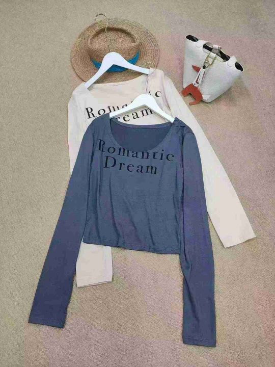 [月亮]:简约字母印花U领辣妹长袖上衣
