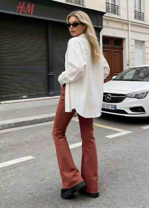 春季新款品牌外贸原单美式宽松高弹力洗水棉微喇叭牛仔...