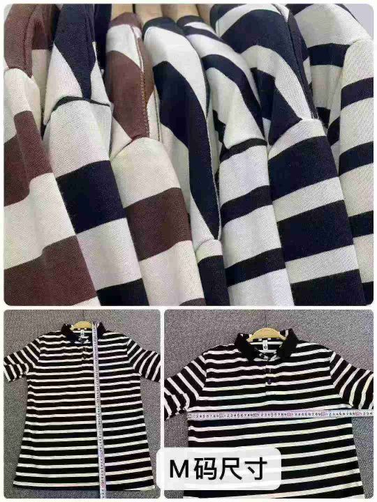 条纹短袖544件9.5,Polo领,面料舒适,圆领少,后领包...