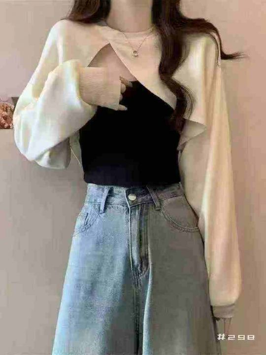 1280套左右春秋新品小香风高级感时尚搭配甜酷辣妹针织毛衣+针织抹胸2件套,...