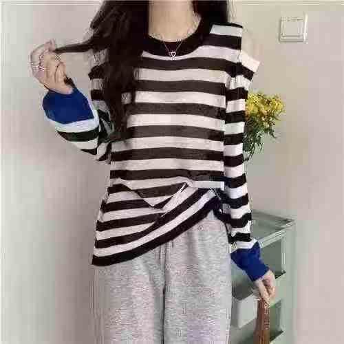 小心机露肩减龄甜美宽松条纹针织衫,数量625件,单款多色,均码,独立包装,分货➕1随机配