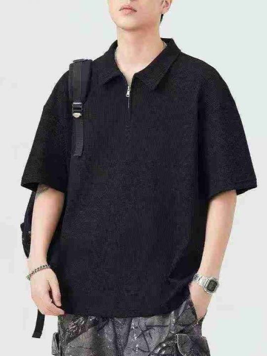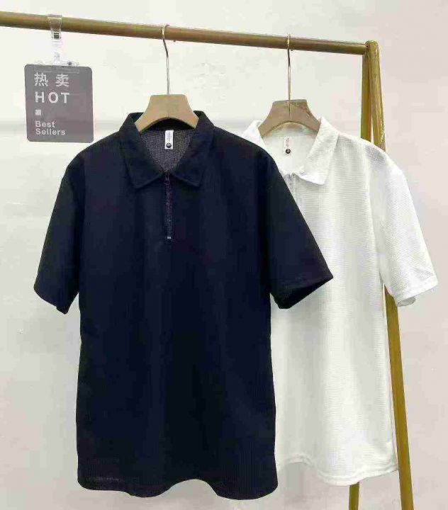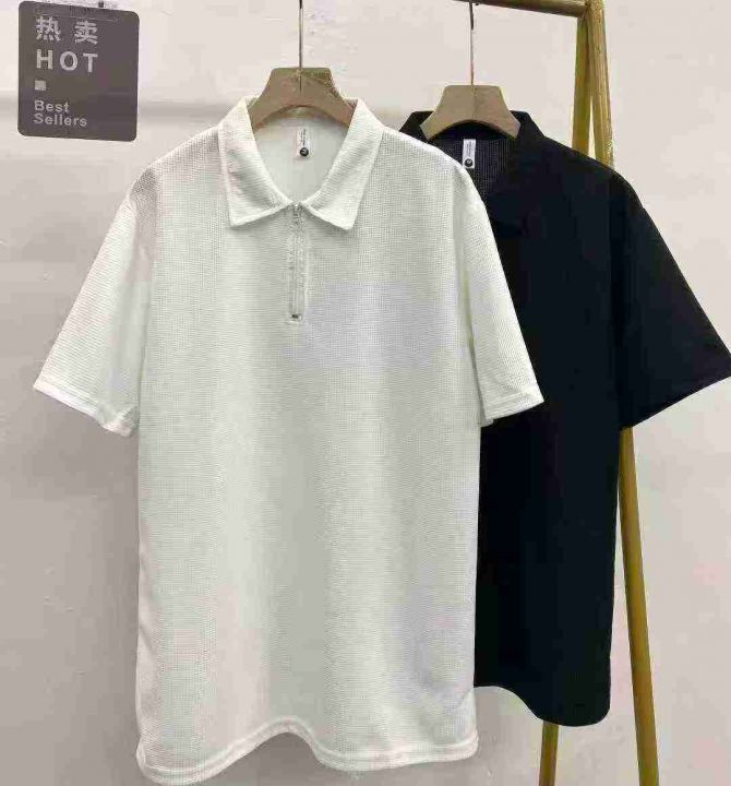 华夫格半拉链短袖190件8.9,Polo领,单款2色,码数M-4...