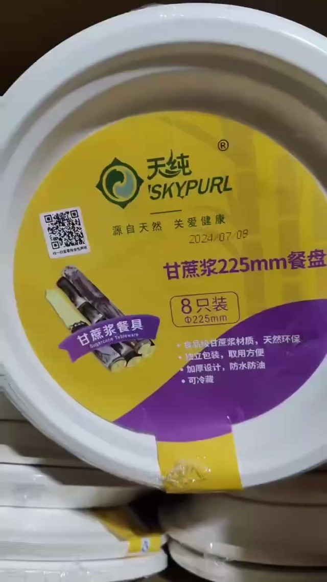 环保天然材质的一次性餐盘,可放微波炉可冷藏,口径22.5厘米,一箱24包一包...